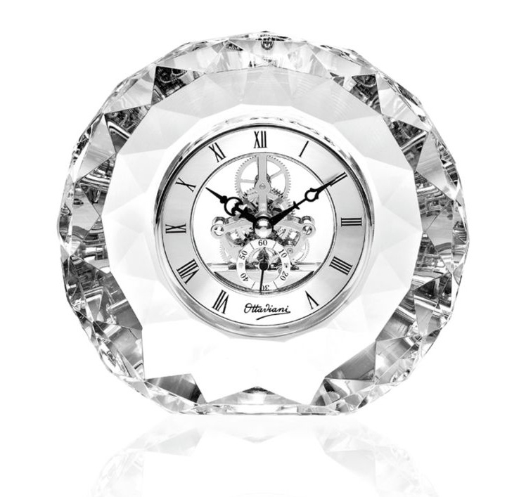 Orologio Ottaviani in Cristallo tondo e sfaccettatoforma con movimento a vista. Misura 15,5 x 15,5 cm spessore 4 cm.
