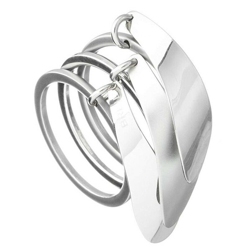 Anello donna BREIL in acciaio satinato e lucido composto da tre fascette con una foglia pendente stilizzata. Disponibile a Misura 15. Scatola ufficiale.