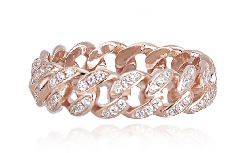Anello maglia groumette in Argento 925/°°° rosato e Zirconi. Disponibile subito a misura 15.
