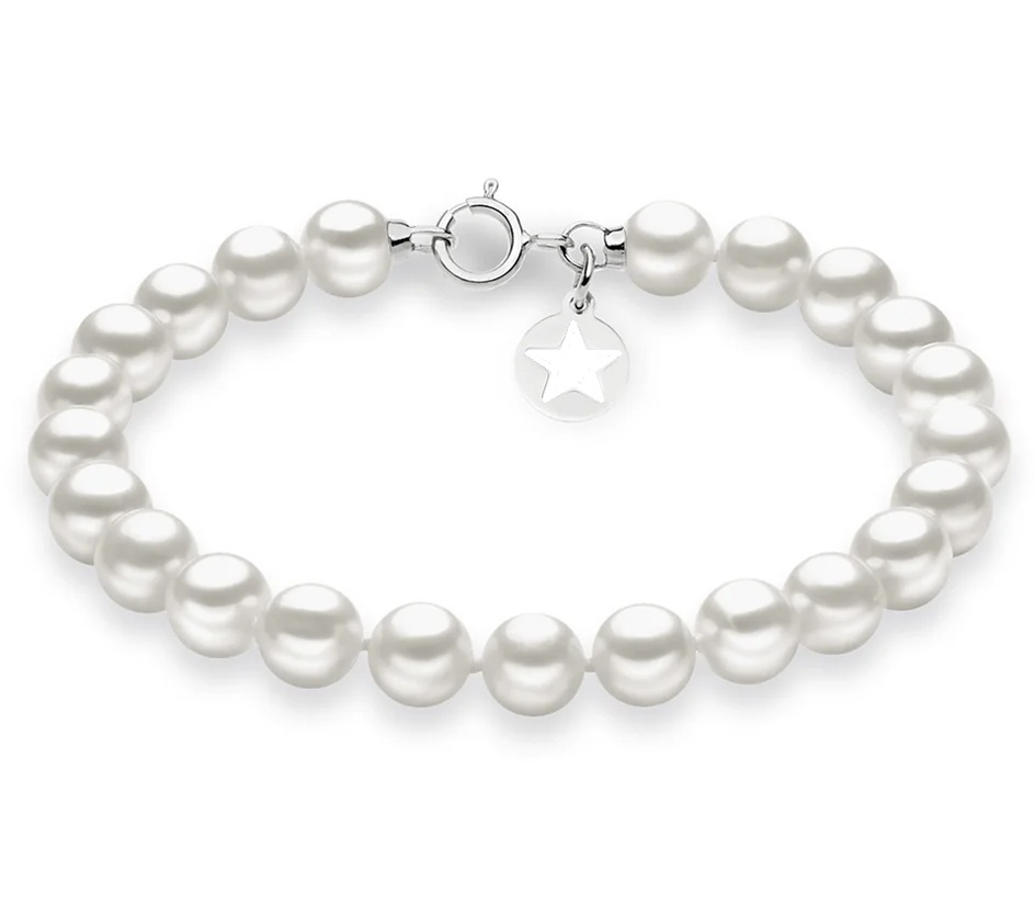 Bracciale Filo Perle coltivate con chiusura ad anello a molla e una stella portafortuna in Oro 750‰. Perle coltivate del Ø 5/5,5 Lunghezza standard di 18 cm.
