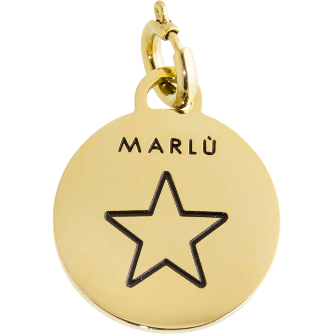 Charm da donna con doppia Incisione Stella da una parte e sulla faccia opposta incisione " Time To Shine and be a superstar ", Gioiello del diametro di cm.1,7. Materiali: Acciaio PVD Oro e Smalto. Moschettone per un facile aggancio.