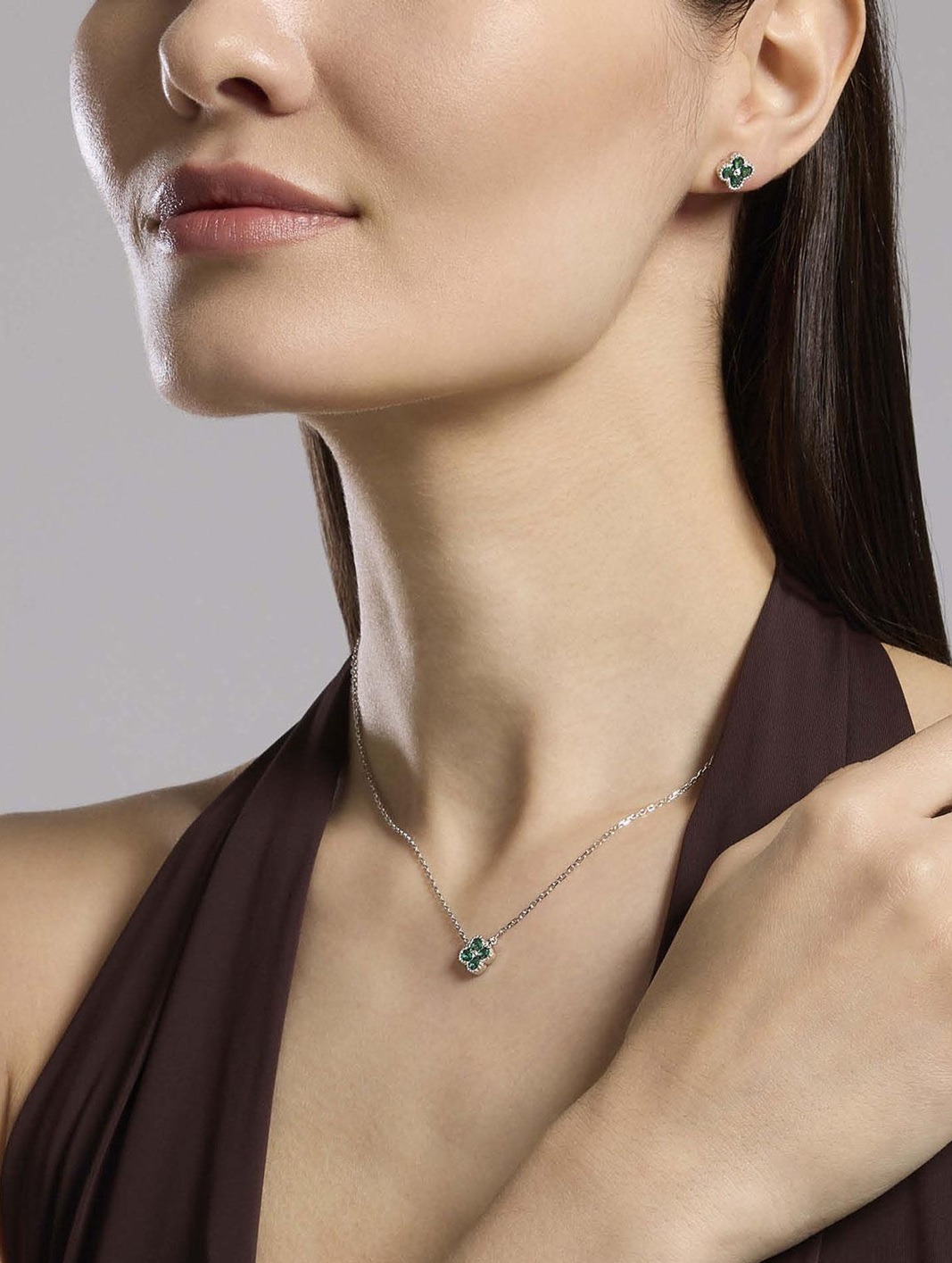 Girocollo in Argento con e ciondolo fiore in Smeraldo sintetico.
