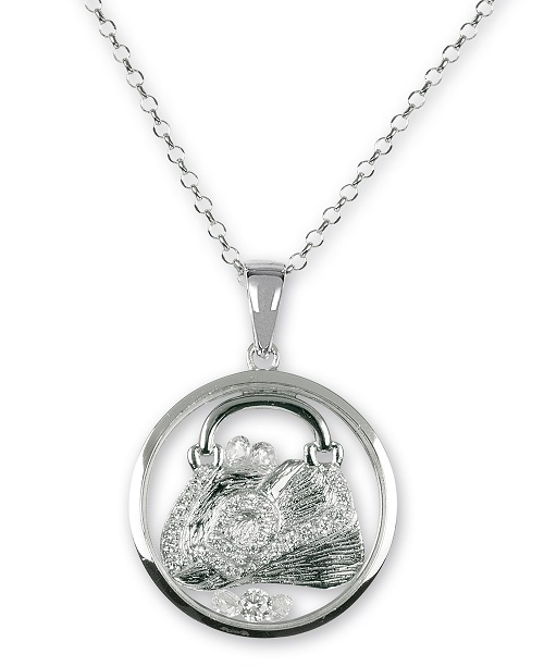 Collana con pendente in argento rodiato 925 Vetro temperato, elementi in zirconia cubica e argento in libero movimento.