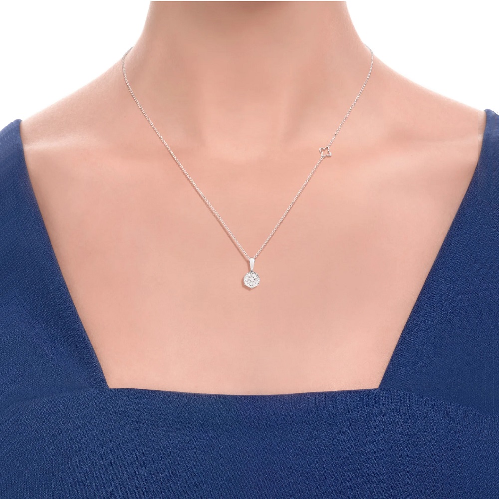 Collana punto luce in oro 18 kt e Diamante taglio brillante 0,19 ct, qualità garantita F/SI. Catena maglia rolò con logo Recarlo, lunghezza regolabile in tre diverse posizioni: 39/42/45 cm. La collezione ANNIVERSARY, si differenzia dalle altre, per il particolare e romantico castone a forma di cuore.