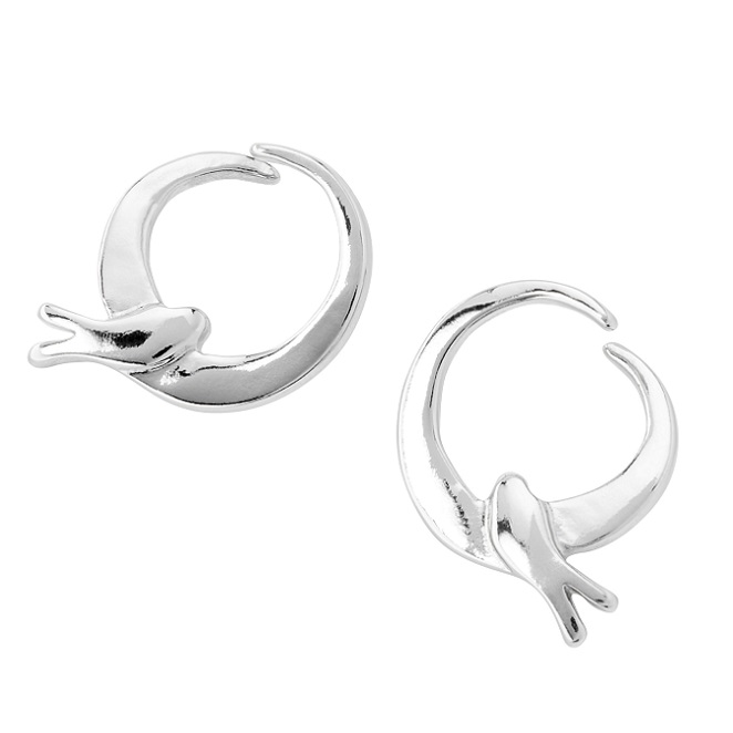 Orecchini in lega argentata, raffiguranti due gracili rondini con le ali disposte a cerchio che ricordano un abbraccio. Questo volatile è simbolo inconfondibile della cultura giapponese.