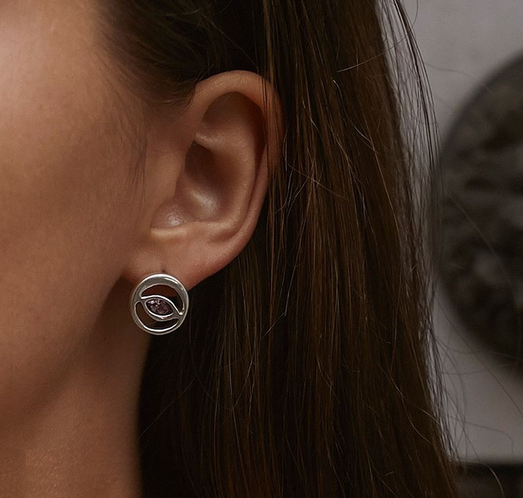 Orecchini in lega argentata e rifiniti da un centrale ovale da cui spicca un prezioso cristallo rosa SWAROVSKI® ELEMENTS al centro. Un gioiello di ispirazione mistica e design minimalista.