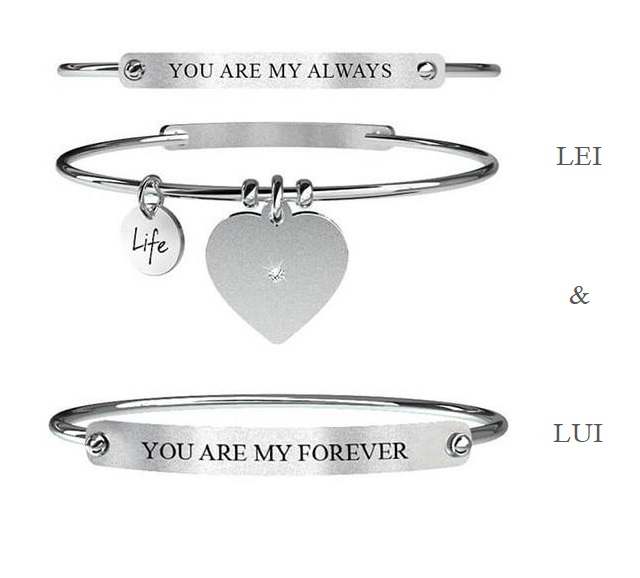 Mod.731054 LUI & LEI | ALWAYS & FOREVER - Conosci ogni centimetro del mio passato e i segreti più intimi del mio universo. Qualsiasi cosa accada, il nostro legame sarà più forte di tutto, più forte del tempo. Tu sei il mio ieri, il mio oggi, il mio domani.