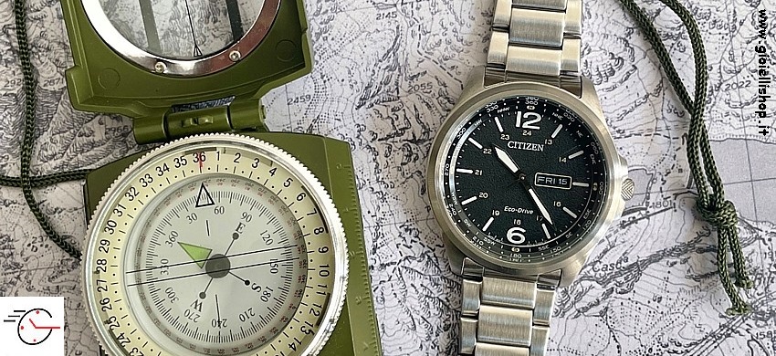 bussola: orientando le lancette con la direzione del sole è infatti possibile trovare i punti cardinali (vedere a tal proposito la guida presente nel sito di Citizen).