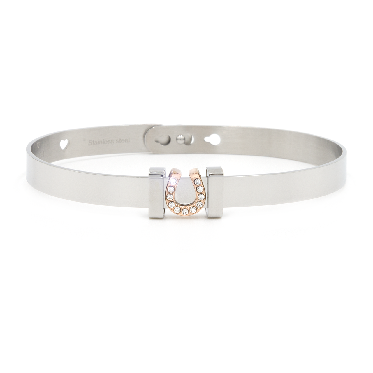 Bracciale in Acciaio lucido con stopper regolabili. Larghezza regolabile a tre posizioni. Personalizza il tuo bracciale, componi il tuo nome o inserisci uno o più simboli, rimuovendo e riposizionando lo stopper potrai sempre aggiungere i tuoi charms preferiti. Variante con charm cuore con cristalli rose gold, componibile in diversi colori. Con un sorriso hai preso il mio cuore ed è stato subito amore, il nostro legame non sarà vento saremo insieme in ogni momento. Indossa il tuo mood, 2much jewels, fatti col cuore Altezza bracciale 6 mm. Altezza lettere 9 mm. Diametro 5,5-6 cm. Garanzia, Confezione e Shopper bag Concessionari ufficiali Spedizione in 24 h.