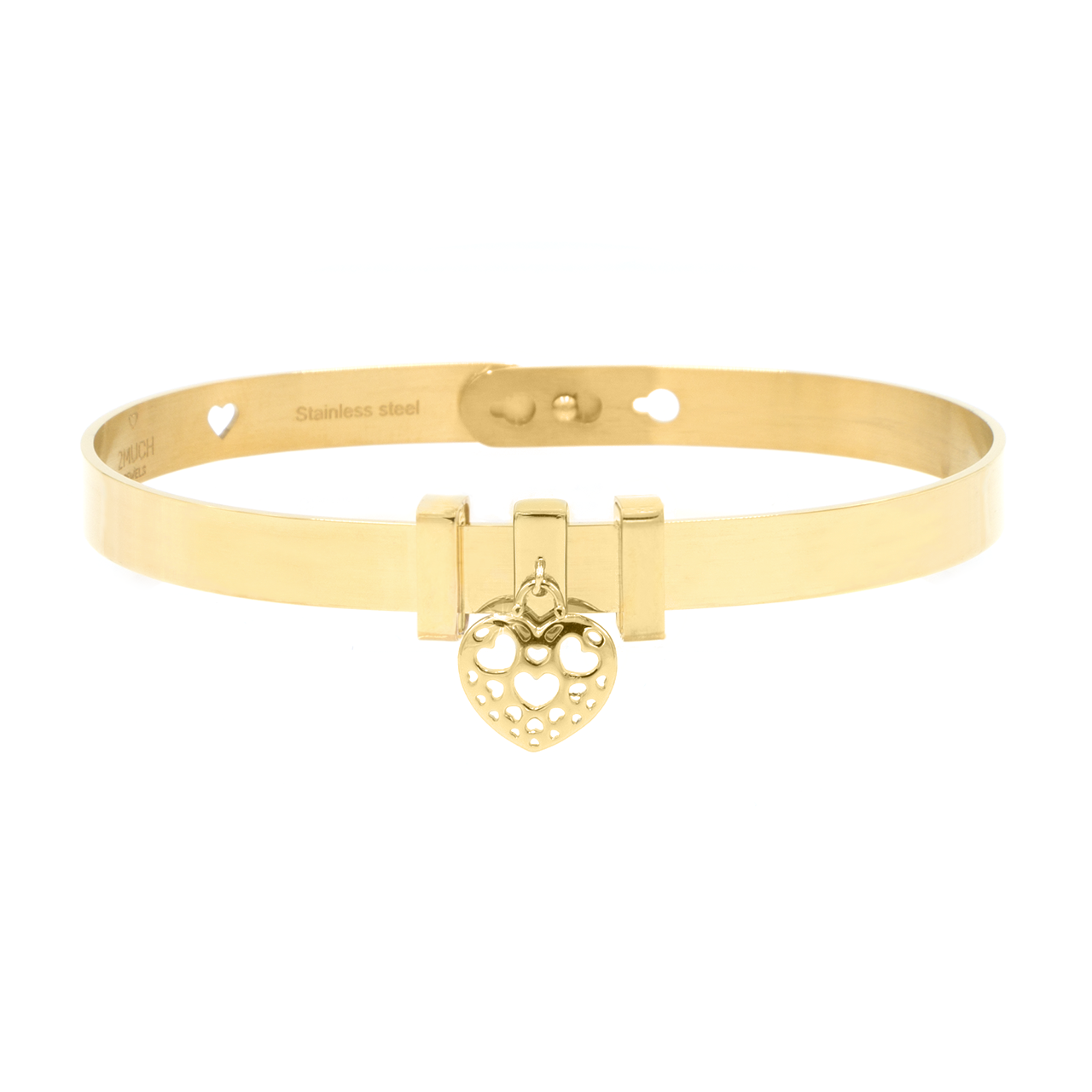 Charm Cuore traforato scorrevole Pvd Gold, da inserire nel bracciale Basic 2MUCH Jewels. Prodotto originale Concessionario ufficiale Spedizione 24 H