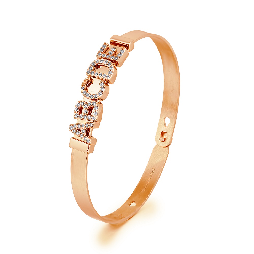 Bracciale in Acciaio lucido con stopper regolabili. Larghezza regolabile a tre posizioni. Personalizza il tuo bracciale, componi il tuo nome o inserisci uno o più simboli, rimuovendo e riposizionando lo stopper potrai sempre aggiungere i tuoi charms preferiti. Variante con charm cuore rose gold, componibile in diversi colori. Con un sorriso hai preso il mio cuore ed è stato subito amore, il nostro legame non sarà vento saremo insieme in ogni momento. Indossa il tuo mood, 2much jewels, fatti col cuore. Altezza bracciale 6 mm. Altezza lettere 9 mm. Diametro 5,5-6 cm. Garanzia, Confezione e Shopper bag Concessionari ufficiali Spedizione in 24 h.