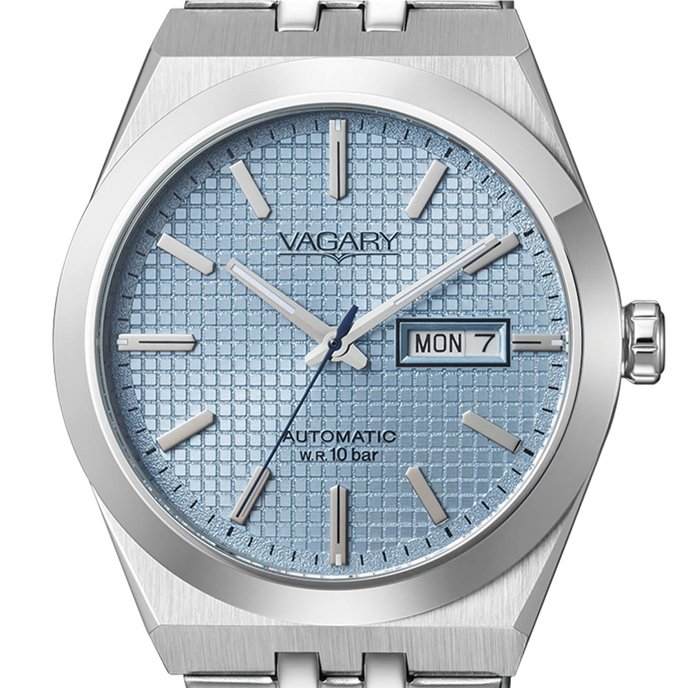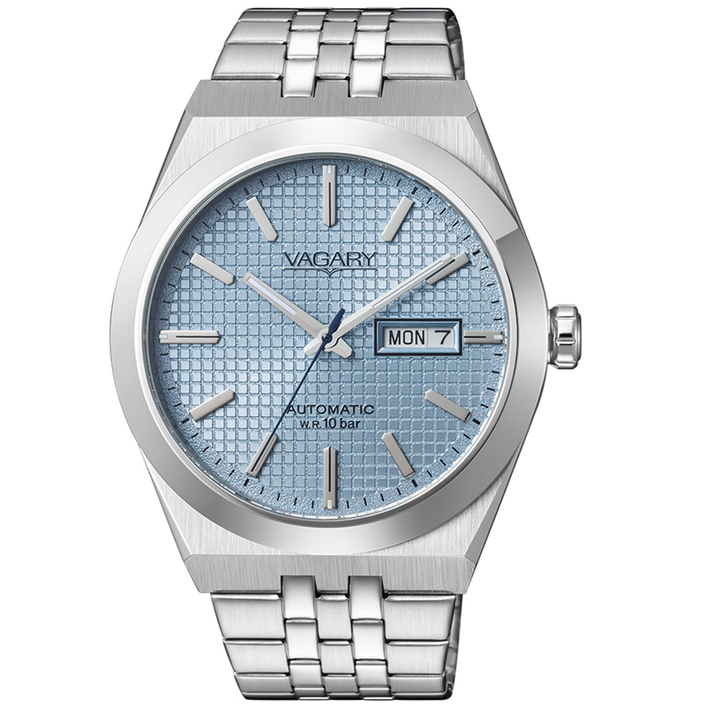 Orologio da uomo solotempo Automatico, collezione G.Matic, modello con cassa in acciaio e fondo a vite con oblo trasparente, diametro di 40 mm. Quadrante Ice Blue con indici, datario a ore tre. Bracciale in acciaio. Movimento Meccanico a ricarica automatica con 40 ore di riserva di carica. Vetro minerale, impermeabilità WR 10 bar.