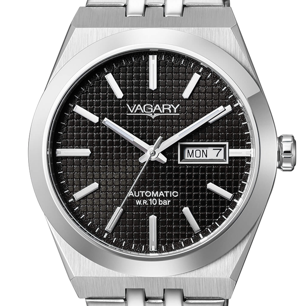 Orologio da uomo solotempo Automatico, collezione G.Matic, modello con cassa in acciaio e fondo a vite con oblo trasparente, diametro di 40 mm. Quadrante nero con indici, datario a ore tre. Bracciale in acciaio. Movimento Meccanico a ricarica automatica con 40 ore di riserva di carica. Vetro minerale, impermeabilità WR 10 bar.