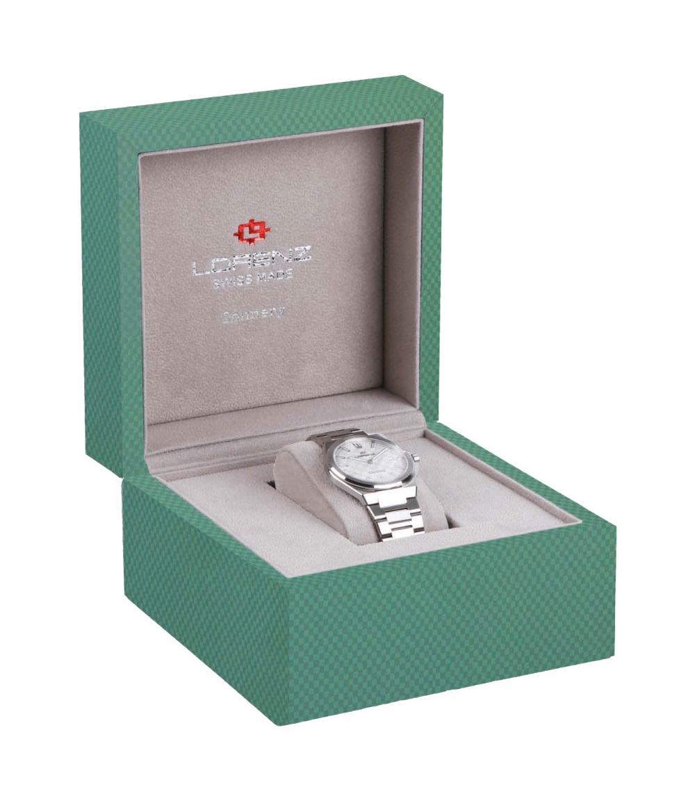 Il nuovo orologio Lorenz Connery, presentato alla fiera dell'Orologeria, si aggiunge alla prestigiosa collezione Swiss Made del marchio. Questo segnatempo extra piatto, con bracciale integrato, coniuga perfettamente un design elegante e una solida struttura.